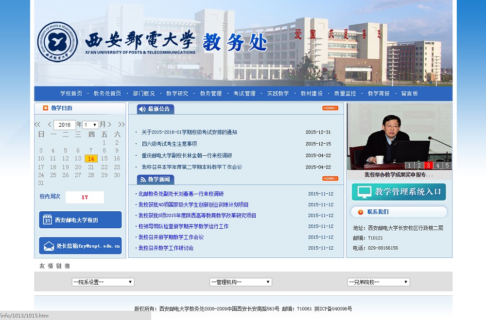 西安邮电大学教务处于2020-06-21被0702投稿网收录,网站相关信息来自互联网或网友分享!由于(西安邮电大学教务处)网站内容动态属性,时刻在变动,本站无法保证(西安邮电大学教务处)网站内容真实可靠!请大家查阅时,谨慎选择、自辩真伪,感谢您的理解与支持。如果您在访问(西安邮电大学教务处)时发现:网址失效、或网站存在非法等相关内容,请及时联系我们,我们会第一时间处理。