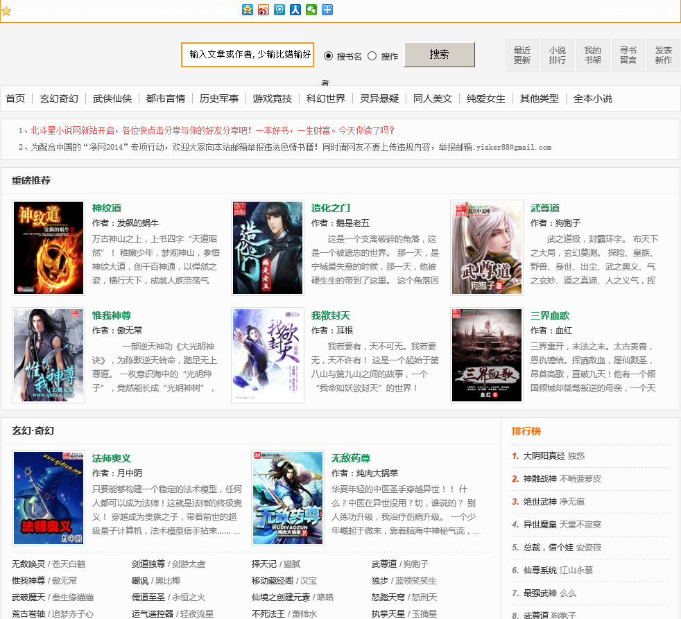 - 网站名称:北斗星小说网