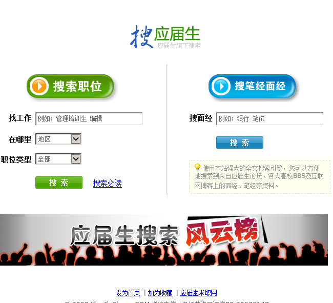 当前位置:主页 > 网站目录 > 应届生求职网职位搜索s.yingjiesheng.com