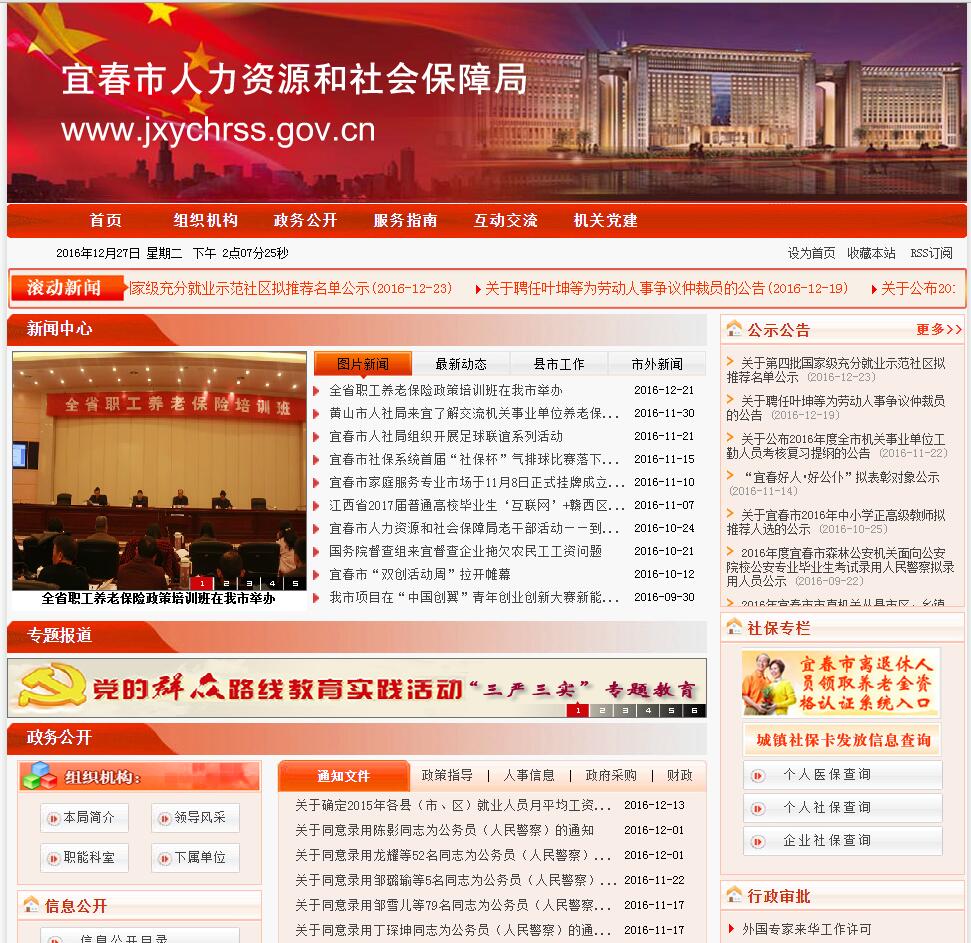 宜春市人力资源和社会保障局网站是宜春市人力资源和社会保障局在互联网上建立的综合性政府门户网站。网站以“政务信息”、“公共服务”、“交流平台”为核心,为公众提供全方位的劳动保障政策查询、政务信息公开、网上互动办事,以及参与监督等服务。