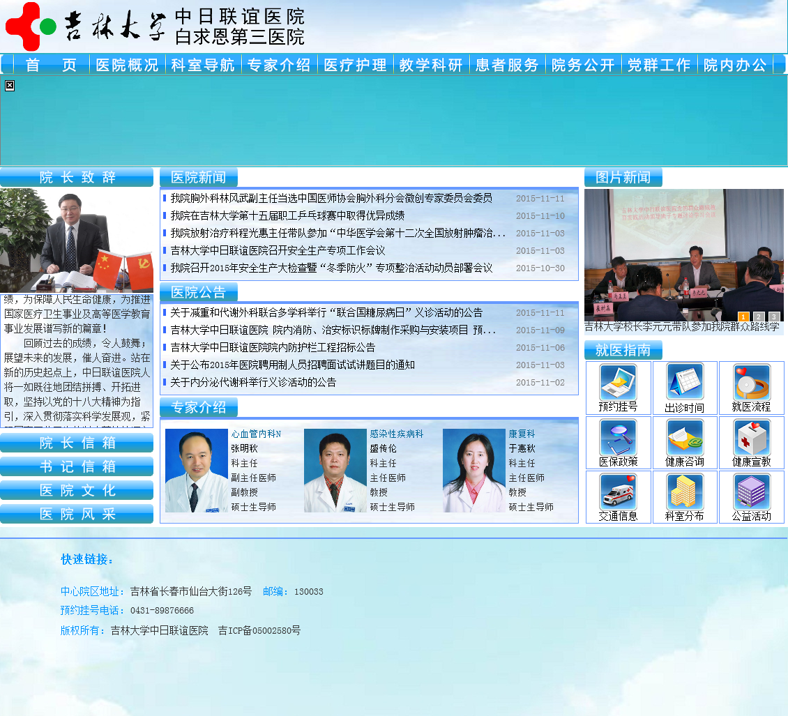 吉林大学中日联谊医院于2020-06-23被0702投稿网收录,网站相关信息来自互联网或网友分享!由于(吉林大学中日联谊医院)网站内容动态属性,时刻在变动,本站无法保证(吉林大学中日联谊医院)网站内容真实可靠!请大家查阅时,谨慎选择、自辩真伪,感谢您的理解与支持。如果您在访问(吉林大学中日联谊医院)时发现:网址失效、或网站存在非法等相关内容,请及时联系我们,我们会第一时间处理。