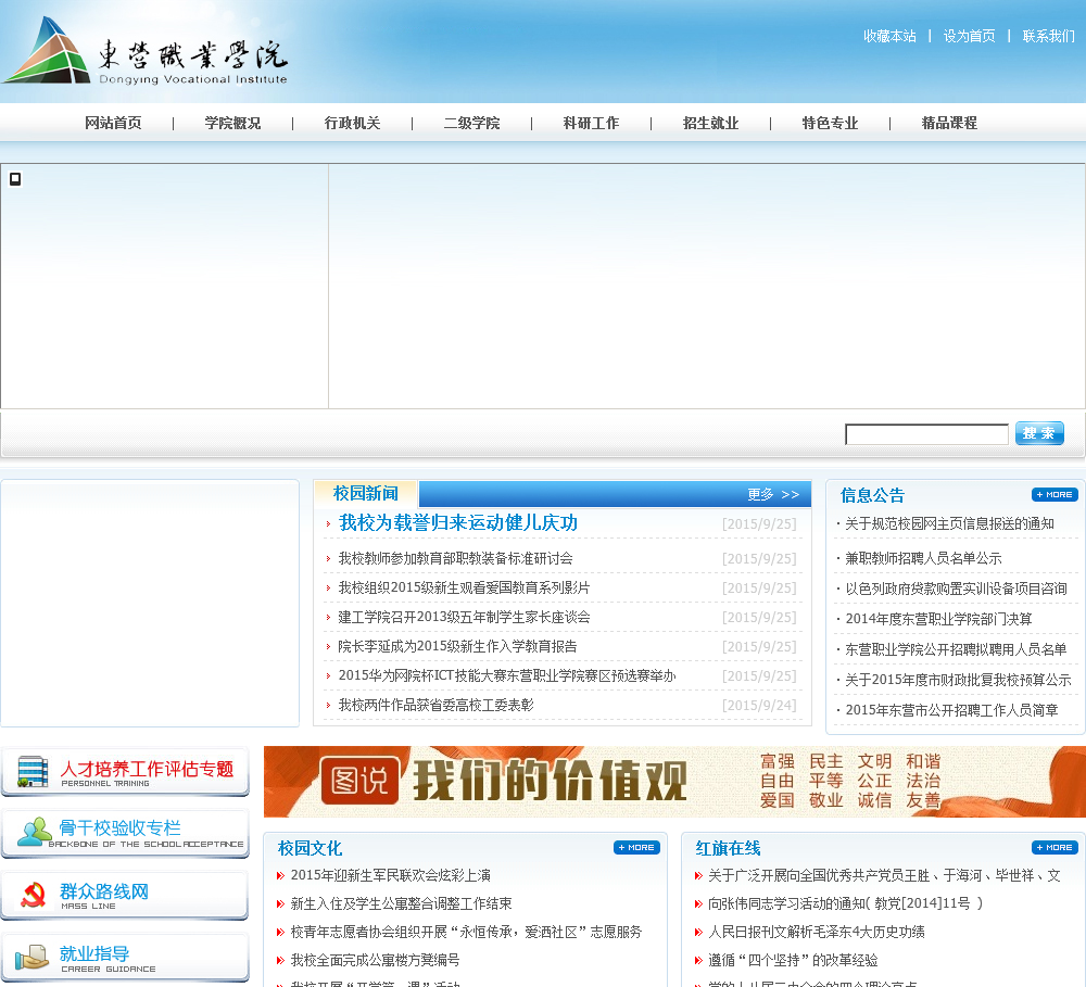 东营职业学院于2020-06-23被0702投稿网收录,网站相关信息来自互联网或网友分享!由于(东营职业学院)网站内容动态属性,时刻在变动,本站无法保证(东营职业学院)网站内容真实可靠!请大家查阅时,谨慎选择、自辩真伪,感谢您的理解与支持。如果您在访问(东营职业学院)时发现:网址失效、或网站存在非法等相关内容,请及时联系我们,我们会第一时间处理。