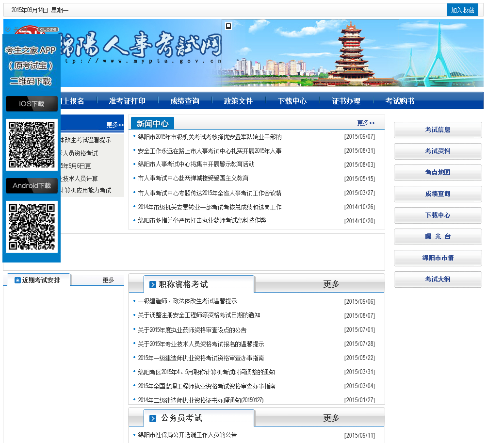 - 网站名称:绵阳人事考试网