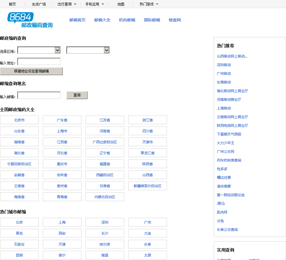 - 网站名称:8684邮编查询网