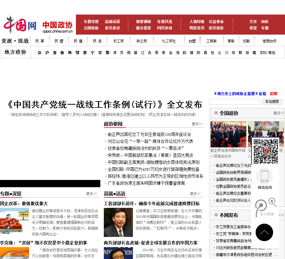 - 网站名称:中国网中国政协频道