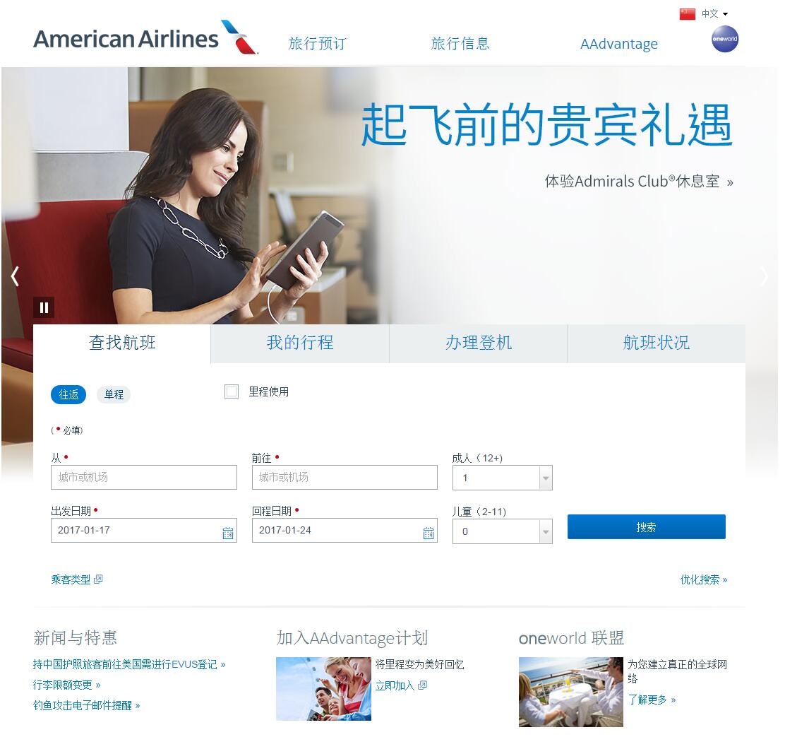 - 网站地址:americanairlines.cn