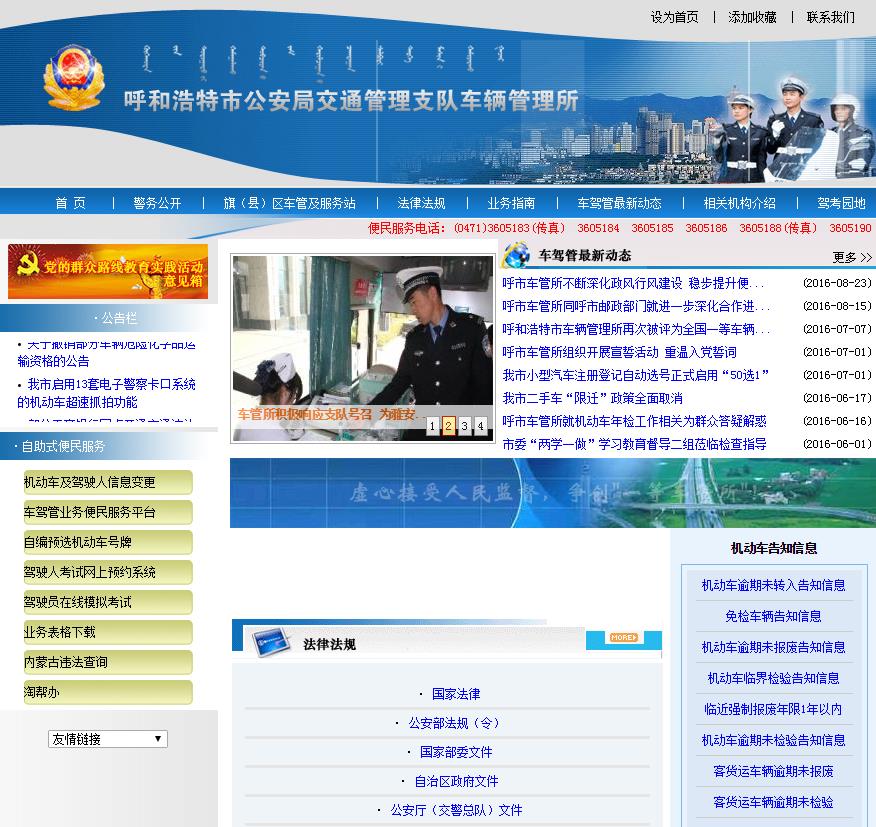 当前位置:主页 > 网站目录 > 呼和浩特市交通管理支队车辆管理所cgs.hhhtgajt.com