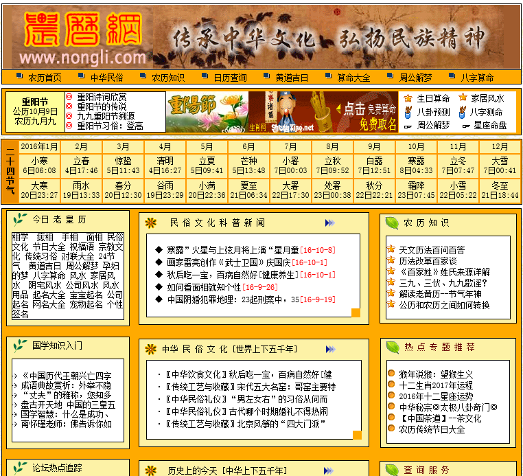 中华农历网于2020-06-27被0702投稿网收录,网站相关信息来自互联网或网友分享!由于(中华农历网)网站内容动态属性,时刻在变动,本站无法保证(中华农历网)网站内容真实可靠!请大家查阅时,谨慎选择、自辩真伪,感谢您的理解与支持。如果您在访问(中华农历网)时发现:网址失效、或网站存在非法等相关内容,请及时联系我们,我们会第一时间处理。