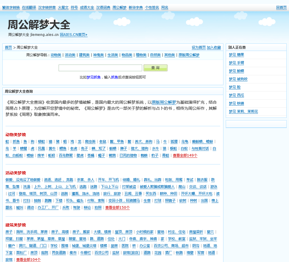 - 网站名称:周公解梦查询