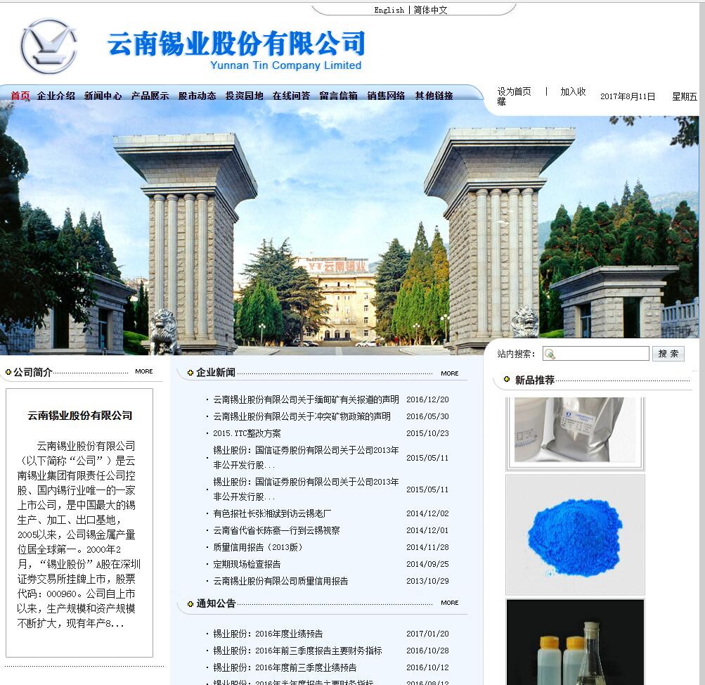锡业股份于2020-06-27被0702投稿网收录,网站相关信息来自互联网或网友分享!由于(锡业股份)网站内容动态属性,时刻在变动,本站无法保证(锡业股份)网站内容真实可靠!请大家查阅时,谨慎选择、自辩真伪,感谢您的理解与支持。如果您在访问(锡业股份)时发现:网址失效、或网站存在非法等相关内容,请及时联系我们,我们会第一时间处理。