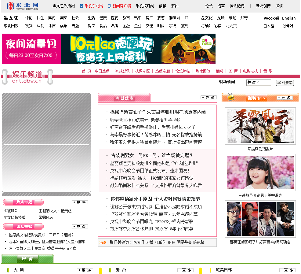 - 网站名称:东北网娱乐频道