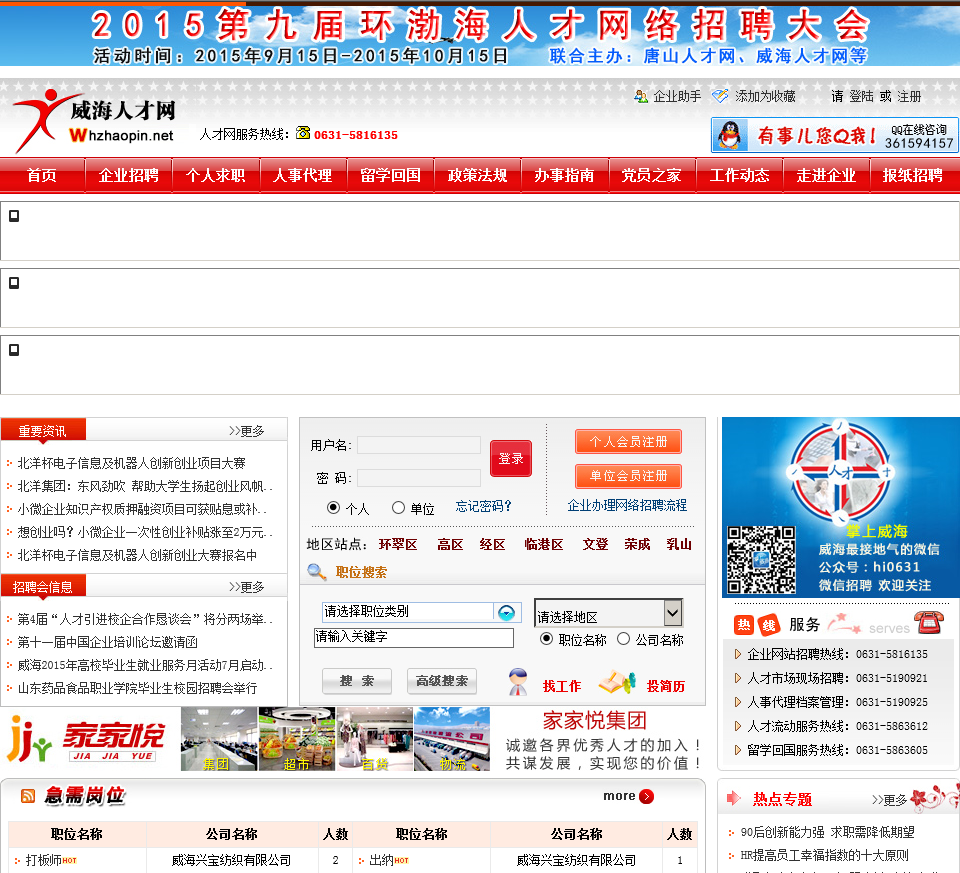 威海人才网于2020-06-27被0702投稿网收录,网站相关信息来自互联网或网友分享!由于(威海人才网)网站内容动态属性,时刻在变动,本站无法保证(威海人才网)网站内容真实可靠!请大家查阅时,谨慎选择、自辩真伪,感谢您的理解与支持。如果您在访问(威海人才网)时发现:网址失效、或网站存在非法等相关内容,请及时联系我们,我们会第一时间处理。