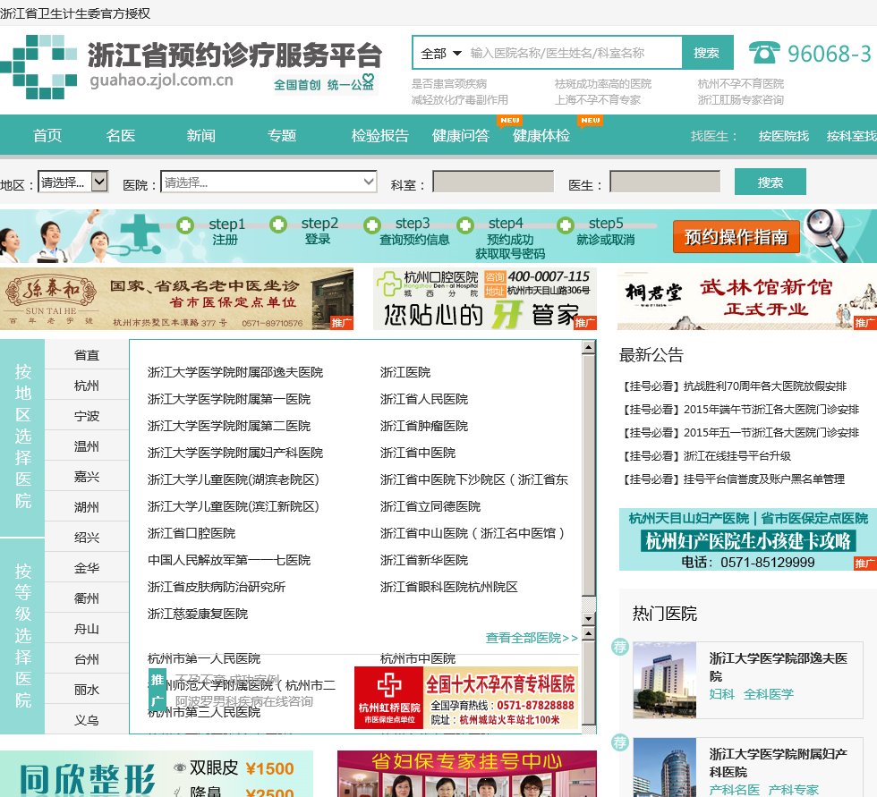 当前位置:主页 > 网站目录 > 浙江省预约诊疗服务平台guahao.zjol.com.cn