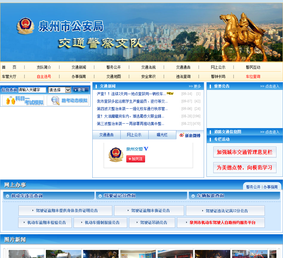 泉州市公安局交警支队于2020-06-29被0702投稿网收录,网站相关信息来自互联网或网友分享!由于(泉州市公安局交警支队)网站内容动态属性,时刻在变动,本站无法保证(泉州市公安局交警支队)网站内容真实可靠!请大家查阅时,谨慎选择、自辩真伪,感谢您的理解与支持。如果您在访问(泉州市公安局交警支队)时发现:网址失效、或网站存在非法等相关内容,请及时联系我们,我们会第一时间处理。