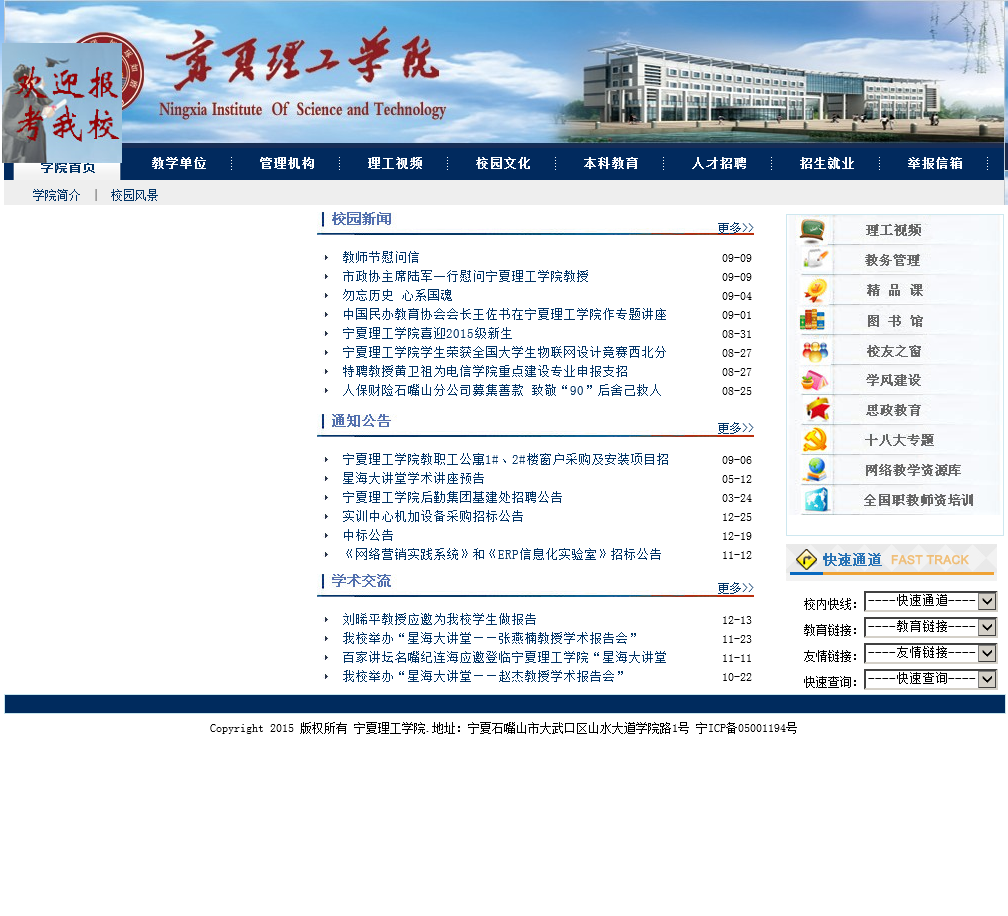 宁夏理工学院于2020-06-29被0702投稿网收录,网站相关信息来自互联网或网友分享!由于(宁夏理工学院)网站内容动态属性,时刻在变动,本站无法保证(宁夏理工学院)网站内容真实可靠!请大家查阅时,谨慎选择、自辩真伪,感谢您的理解与支持。如果您在访问(宁夏理工学院)时发现:网址失效、或网站存在非法等相关内容,请及时联系我们,我们会第一时间处理。