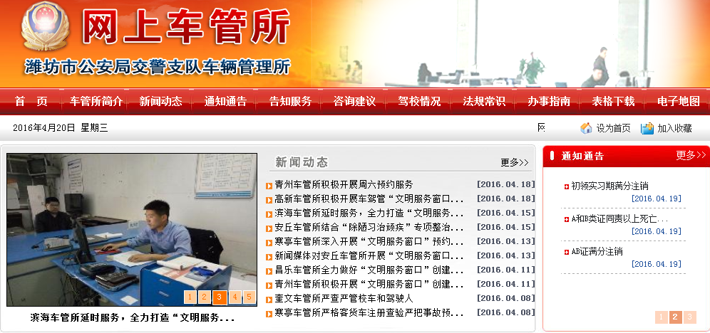 当前位置:主页 > 网站目录 > 潍坊市公安局交通警察支队车辆管理所wfcgs.com