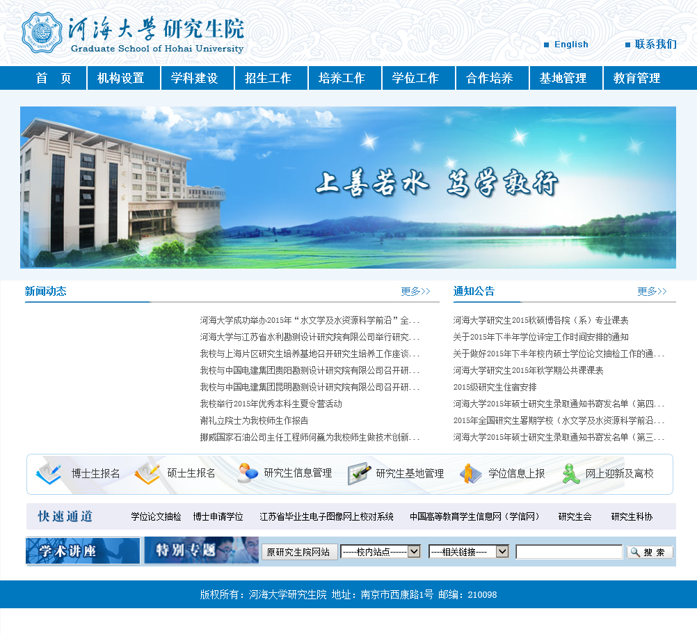 河海大学研究生院于2020-06-30被0702投稿网收录,网站相关信息来自互联网或网友分享!由于(河海大学研究生院)网站内容动态属性,时刻在变动,本站无法保证(河海大学研究生院)网站内容真实可靠!请大家查阅时,谨慎选择、自辩真伪,感谢您的理解与支持。如果您在访问(河海大学研究生院)时发现:网址失效、或网站存在非法等相关内容,请及时联系我们,我们会第一时间处理。