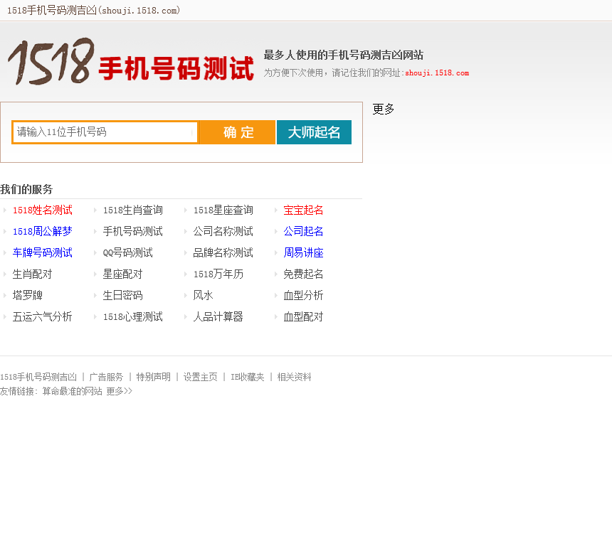 1518手机号码吉凶查询网站(shouji.1518.com)提供权威可信赖的免费手机号码吉凶测试服务。