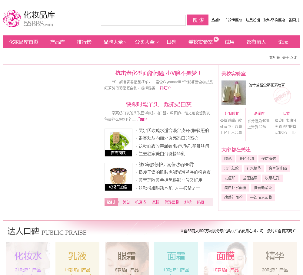 55BBS我爱购物网化妆品库提供新权威的化妆品品牌大全,化妆品价格和产品使用心得分享,为爱美的姐妹们购买化妆品提供有价值的参考.