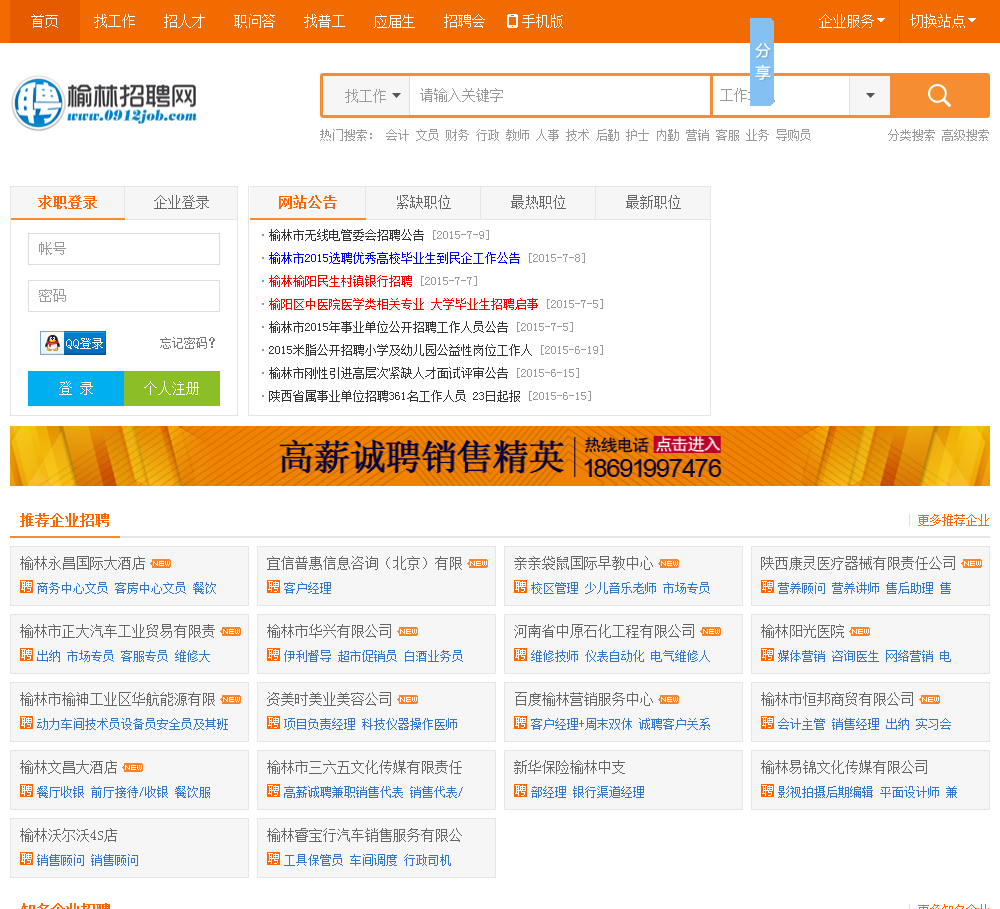 榆林人才网于2020-06-30被0702投稿网收录,网站相关信息来自互联网或网友分享!由于(榆林人才网)网站内容动态属性,时刻在变动,本站无法保证(榆林人才网)网站内容真实可靠!请大家查阅时,谨慎选择、自辩真伪,感谢您的理解与支持。如果您在访问(榆林人才网)时发现:网址失效、或网站存在非法等相关内容,请及时联系我们,我们会第一时间处理。