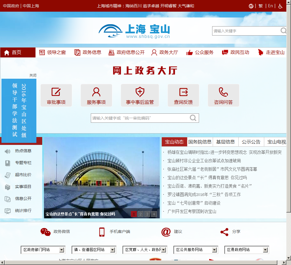 上海市宝山区人民政府于2020-06-30被0702投稿网收录,网站相关信息来自互联网或网友分享!由于(上海市宝山区人民政府)网站内容动态属性,时刻在变动,本站无法保证(上海市宝山区人民政府)网站内容真实可靠!请大家查阅时,谨慎选择、自辩真伪,感谢您的理解与支持。如果您在访问(上海市宝山区人民政府)时发现:网址失效、或网站存在非法等相关内容,请及时联系我们,我们会第一时间处理。