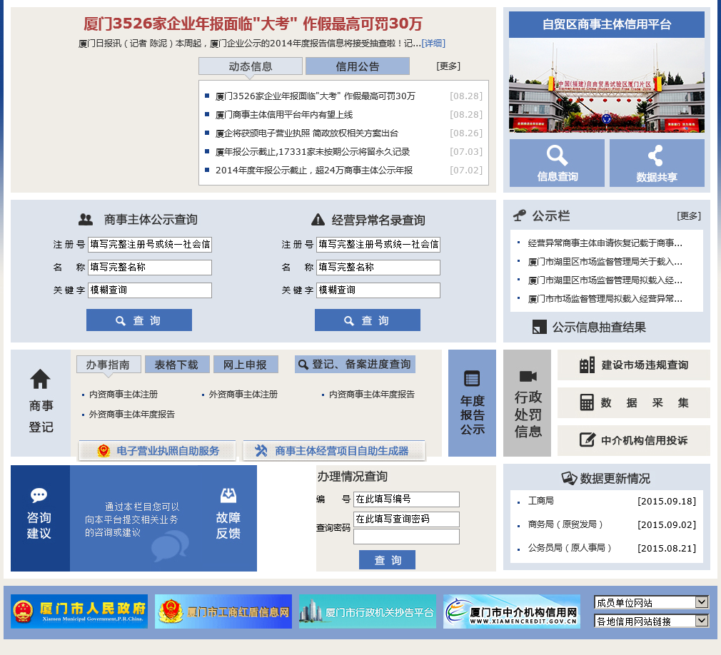 厦门市商事主体登记及信用信息公示平台