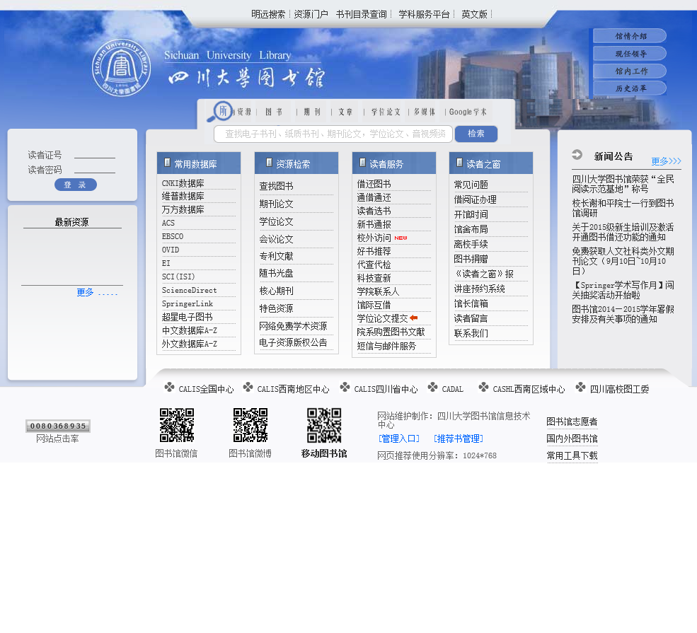 - 网站地址:lib.scu.edu.cn