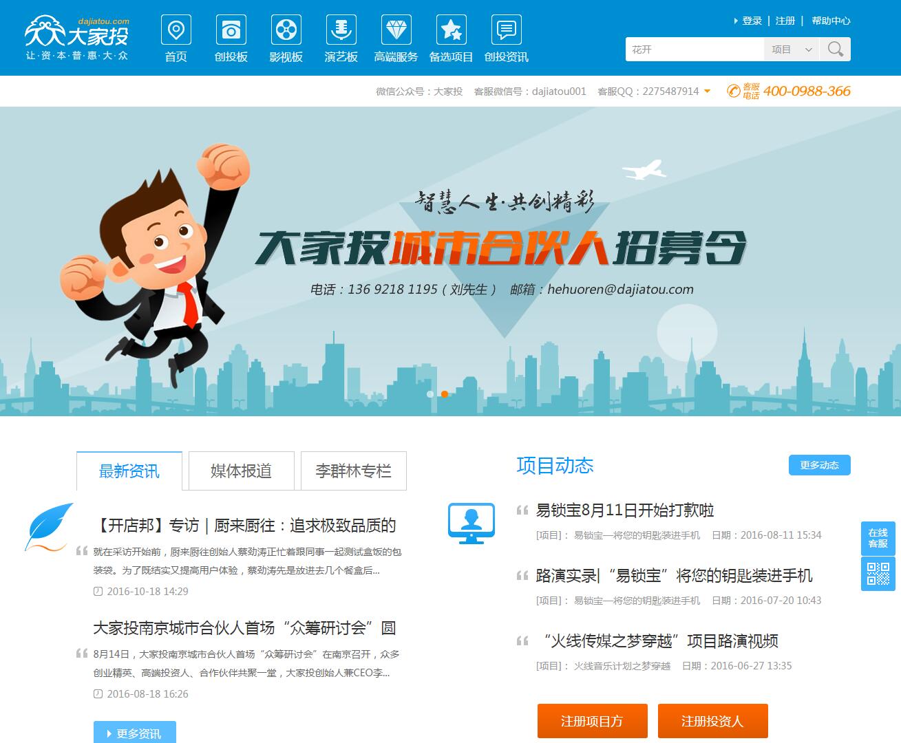 大家投众筹网于2020-07-01被0702投稿网收录,网站相关信息来自互联网或网友分享!由于(大家投众筹网)网站内容动态属性,时刻在变动,本站无法保证(大家投众筹网)网站内容真实可靠!请大家查阅时,谨慎选择、自辩真伪,感谢您的理解与支持。如果您在访问(大家投众筹网)时发现:网址失效、或网站存在非法等相关内容,请及时联系我们,我们会第一时间处理。