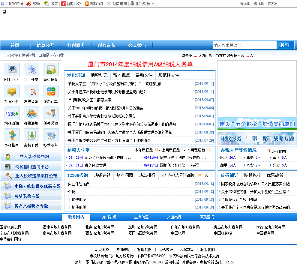 厦门市地方税务局于2020-07-01被0702投稿网收录,网站相关信息来自互联网或网友分享!由于(厦门市地方税务局)网站内容动态属性,时刻在变动,本站无法保证(厦门市地方税务局)网站内容真实可靠!请大家查阅时,谨慎选择、自辩真伪,感谢您的理解与支持。如果您在访问(厦门市地方税务局)时发现:网址失效、或网站存在非法等相关内容,请及时联系我们,我们会第一时间处理。