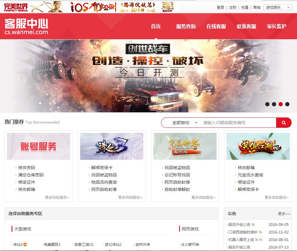 - 网站名称:完美世界客服中心