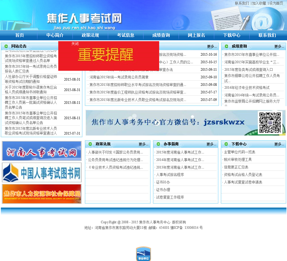 - 网站名称:焦作市人事考务中心