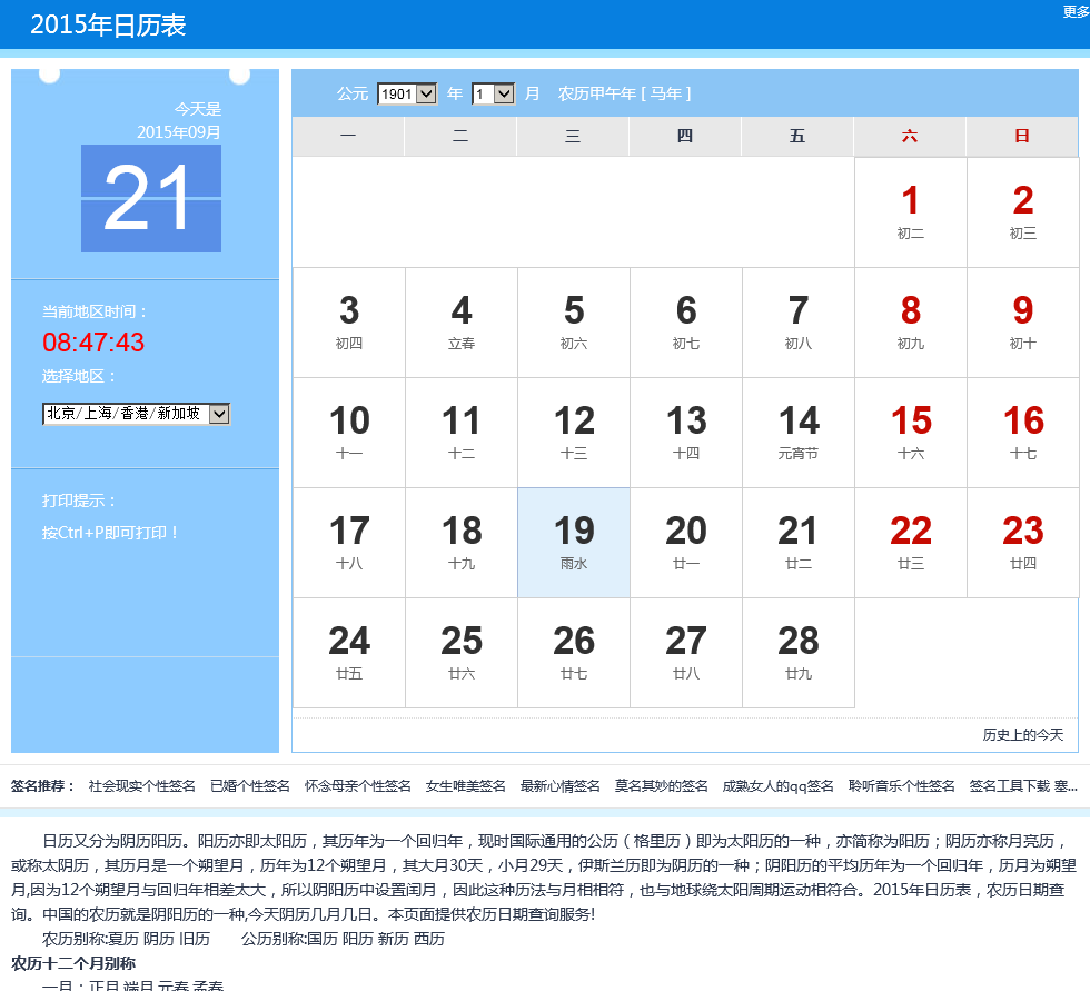 - 网站名称:2015年日历表