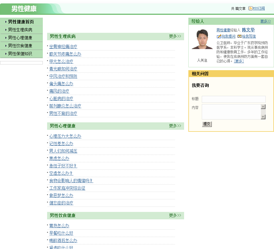 为您提供全面的男性健康、男性疾病、男性生活、男性保健、男科疾病等男性健康相关知识与指导,让您成为一位时尚健康的男性.