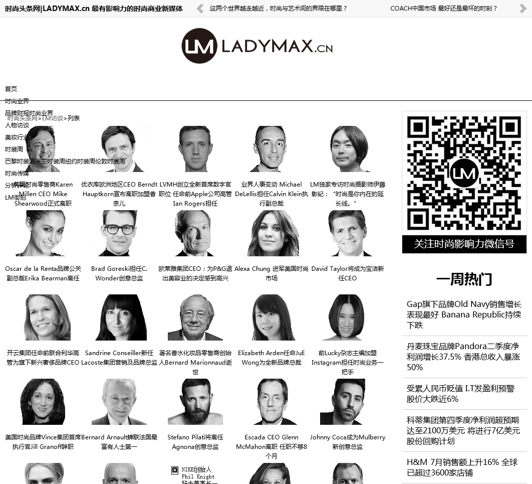 时尚头条网人物访谈栏目,报道内容包括时尚业界人事变动,拥有时尚业界最全的时尚人物库。