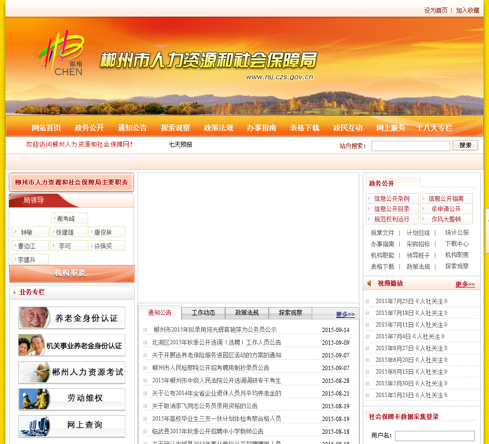 - 网站名称:郴州人社局门户网站