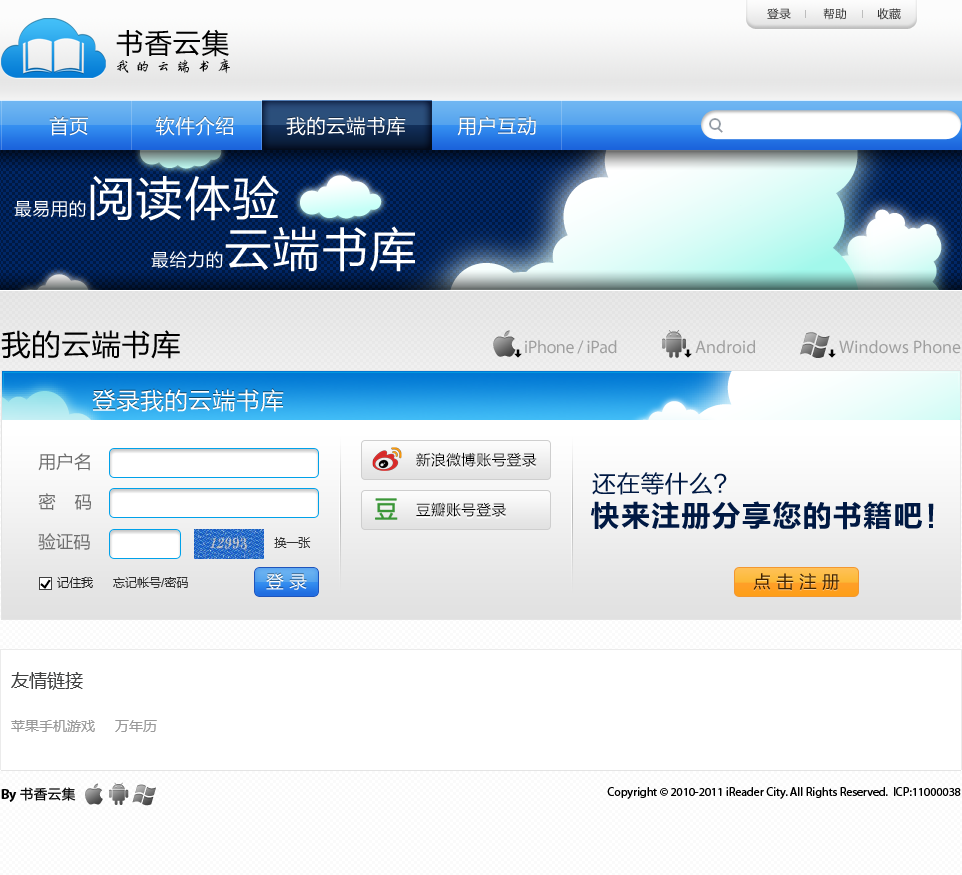 当前位置:主页 > 网站目录 > 书香云集-我的云端书库ibooks.ireadercity.com