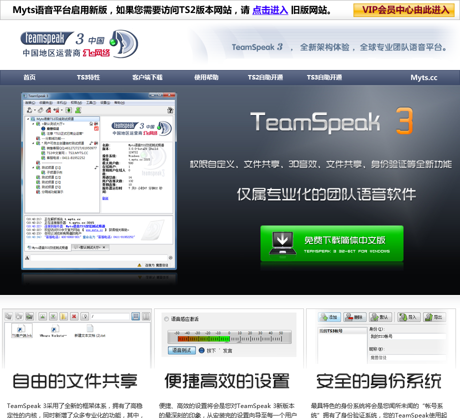 teamspeak语音平台中文官方网站,专注于提供teamspeak2以及teamspeak3版本的语音聊天服务,网站内提供TS2,TS3使用说明以及版本下载.