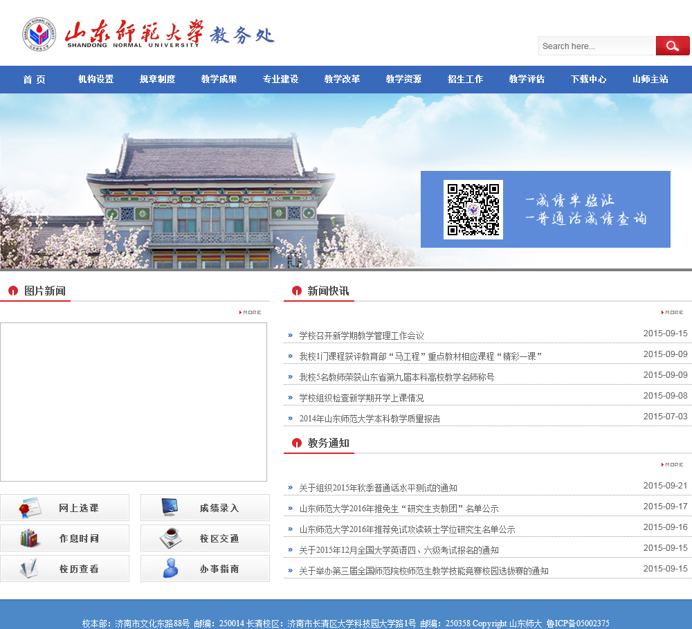 山东师范大学于2020-07-08被0702投稿网收录,网站相关信息来自互联网或网友分享!由于(山东师范大学)网站内容动态属性,时刻在变动,本站无法保证(山东师范大学)网站内容真实可靠!请大家查阅时,谨慎选择、自辩真伪,感谢您的理解与支持。如果您在访问(山东师范大学)时发现:网址失效、或网站存在非法等相关内容,请及时联系我们,我们会第一时间处理。
