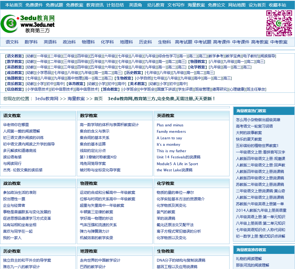 3edu教育网旗下的海量教案频道,跟本站的整册教案频道不同,这里提供的是在线阅读类的文本资源。无需下载,直接在网页阅读和复制使用。