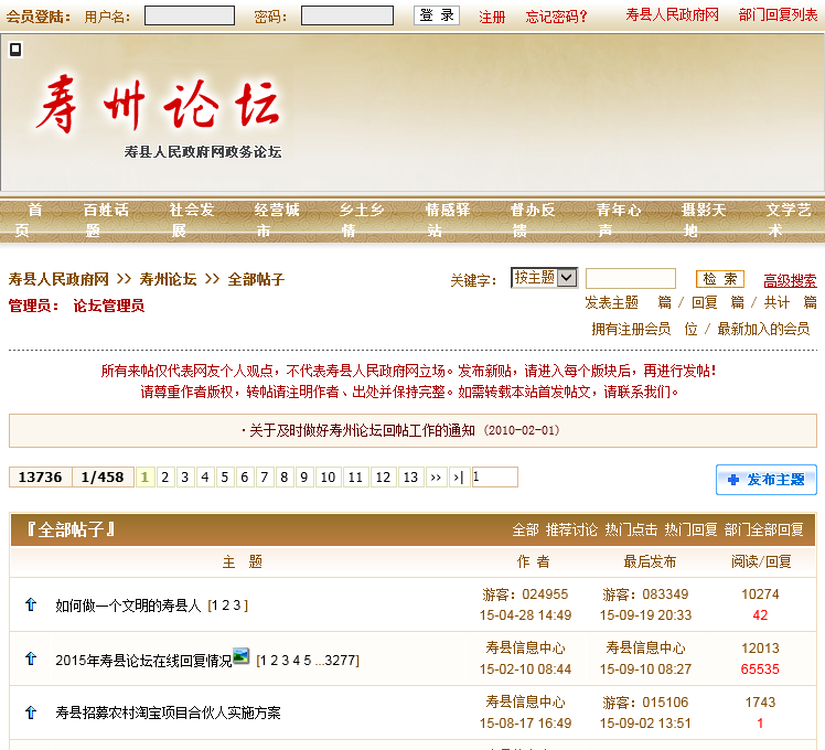 - 网站名称:寿县人民政府论坛