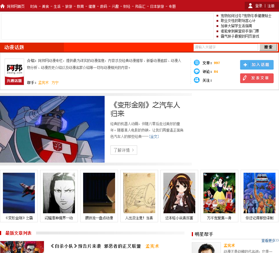 - 网站名称:阿邦网动漫专栏