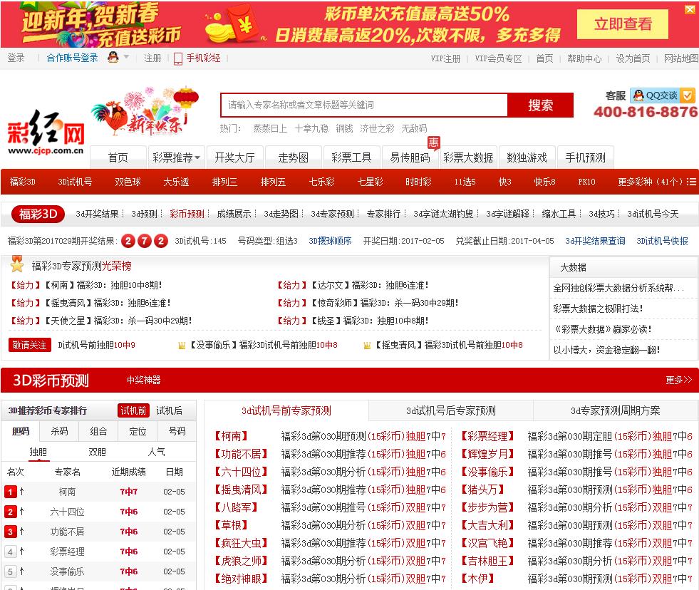 - 网站名称:福彩3D-彩经网