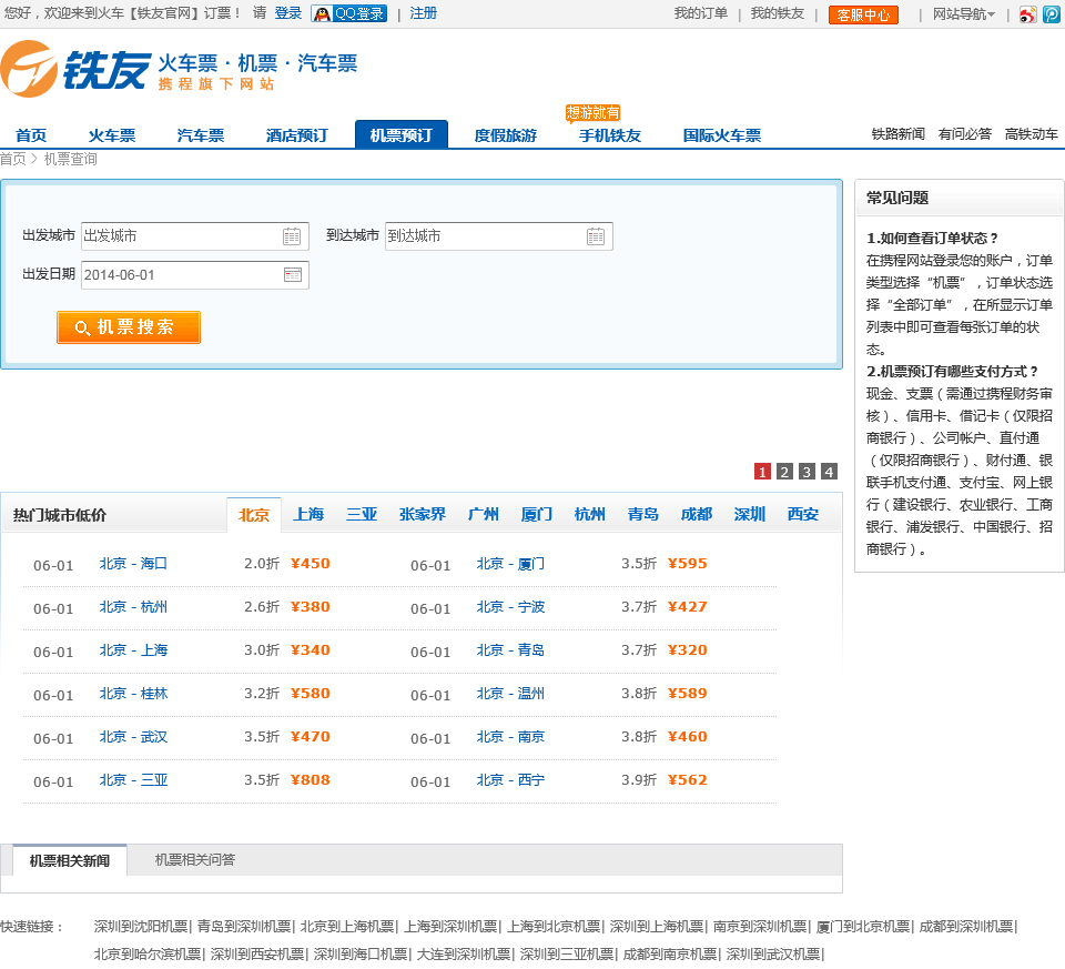 - 网站名称:铁友网机票查询