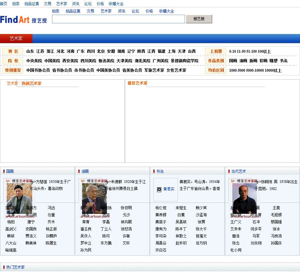 - 网站地址:yishujia.findart.com.cn