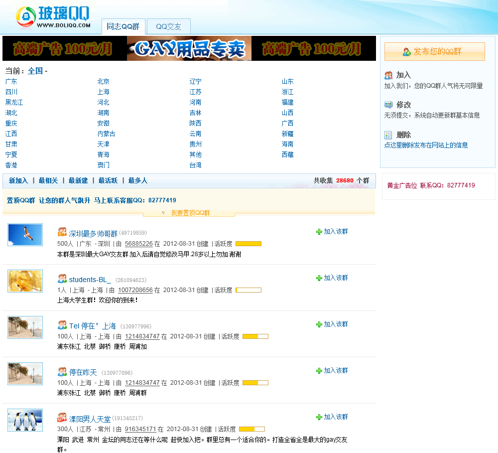 - 网站名称:玻璃QQ同志交友网