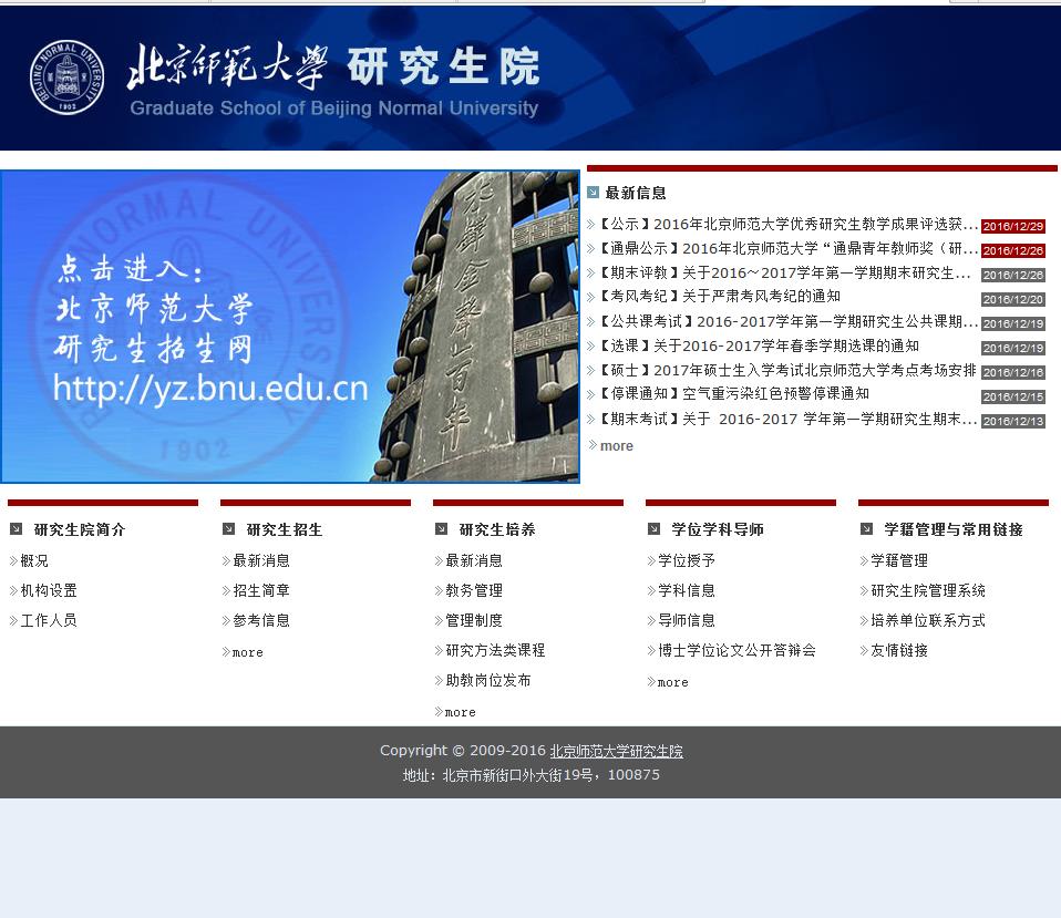 当前位置:主页 > 网站目录 > 北京师范大学研究生院graduate.bnu.edu.cn