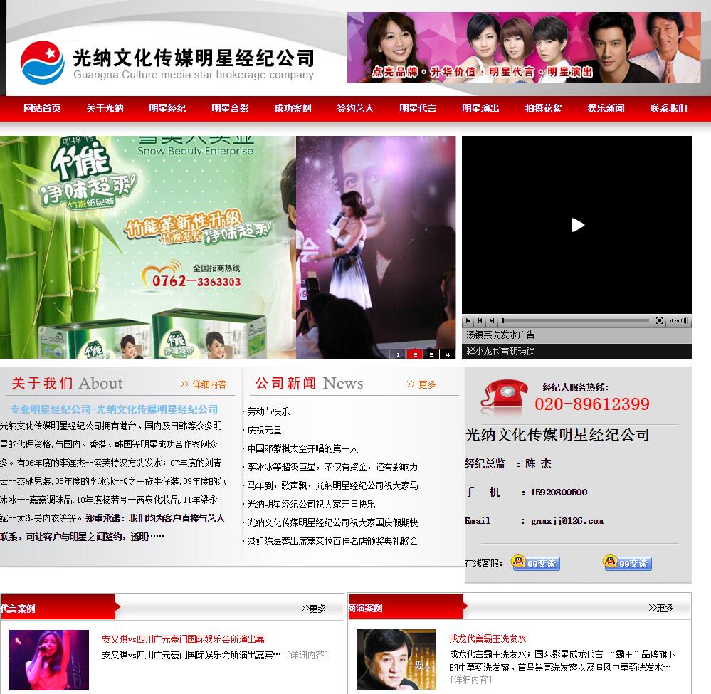 光纳文化传媒明星经纪公司成立于2003年,主要从事明星代言,明星经纪,明星演出活动,拥有港台,国内及日韩等众多明星的代理资格,与国内,香港,韩国等明星成功合作案例200多个。