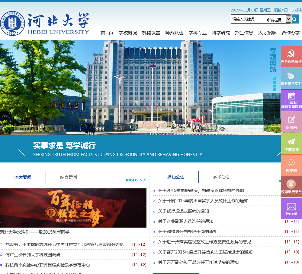 河北大学于2020-07-13被0702投稿网收录,网站相关信息来自互联网或网友分享!由于(河北大学)网站内容动态属性,时刻在变动,本站无法保证(河北大学)网站内容真实可靠!请大家查阅时,谨慎选择、自辩真伪,感谢您的理解与支持。如果您在访问(河北大学)时发现:网址失效、或网站存在非法等相关内容,请及时联系我们,我们会第一时间处理。