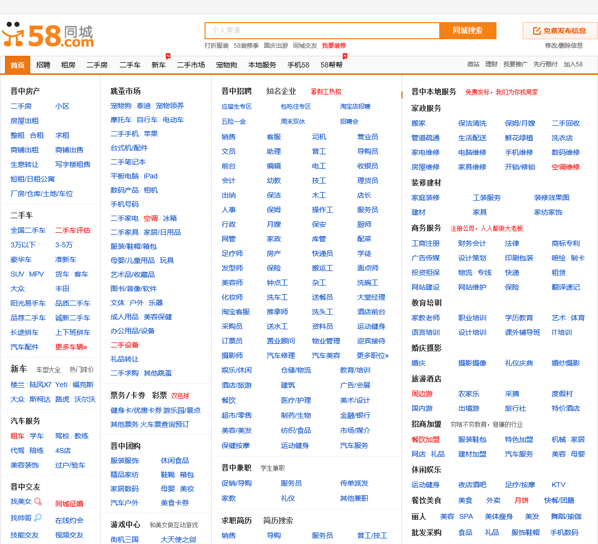 58同城晋中分类信息网,为你提供房产、招聘、黄页、团购、交友、二手、宠物、车辆、周边游等海量分类信息,充分满足您免费查看/发布信息的需求。晋中58同城,专业的分类信息网。