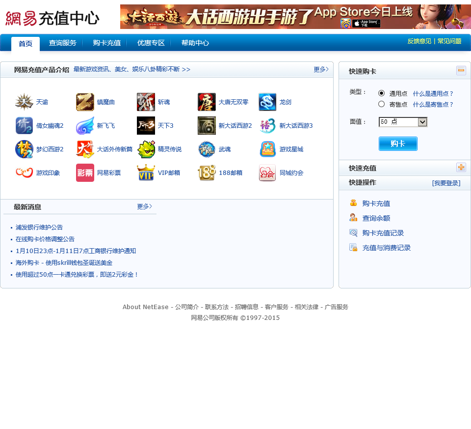 - 网站名称:网易充值中心